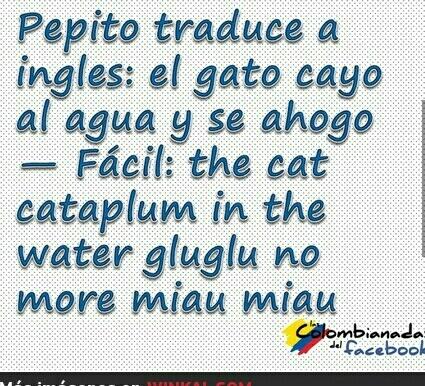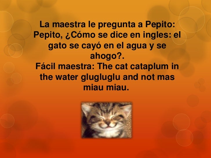 Pepito como se dice en ingles. The cat cataplum in the water glugluglu and not mas miau miau. Pepito como se dice en ingles. Frase publicada el martes 12 de julio del 2016 a las 190806 8930 votos.