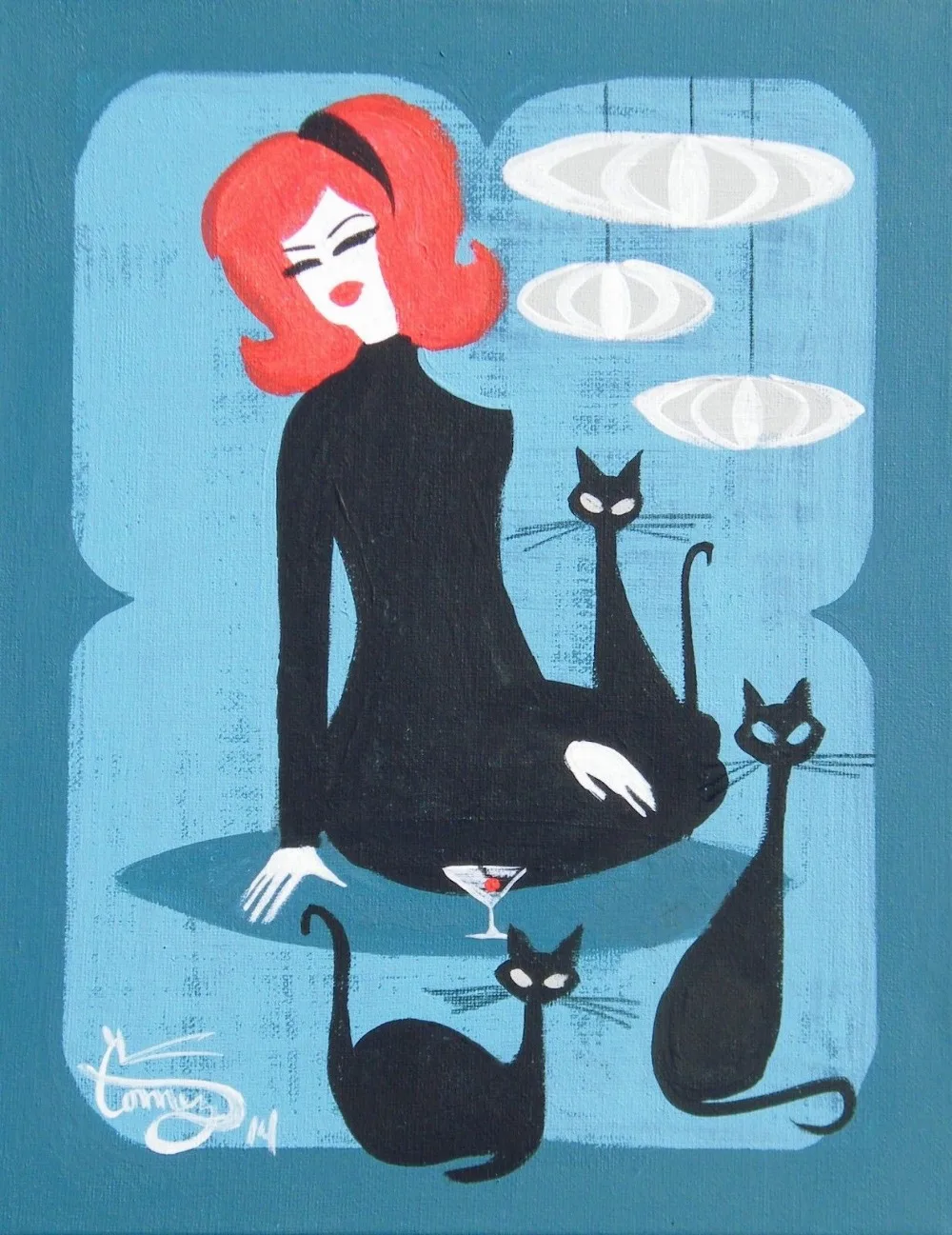 El Gato Gomez Painting Retro Martini Girl 1950s Kitschy Mid
