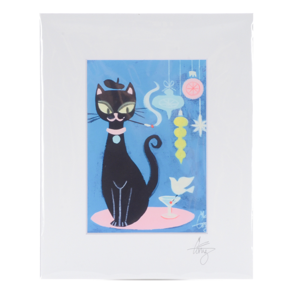 El Gato Gomez Print Retro Vintage Mid Century Holiday Christmas