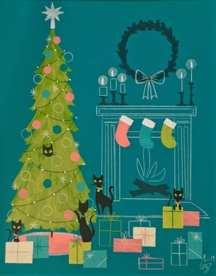 El Gato Gomez Painting Mid Century Modern Christmas Holiday Cat