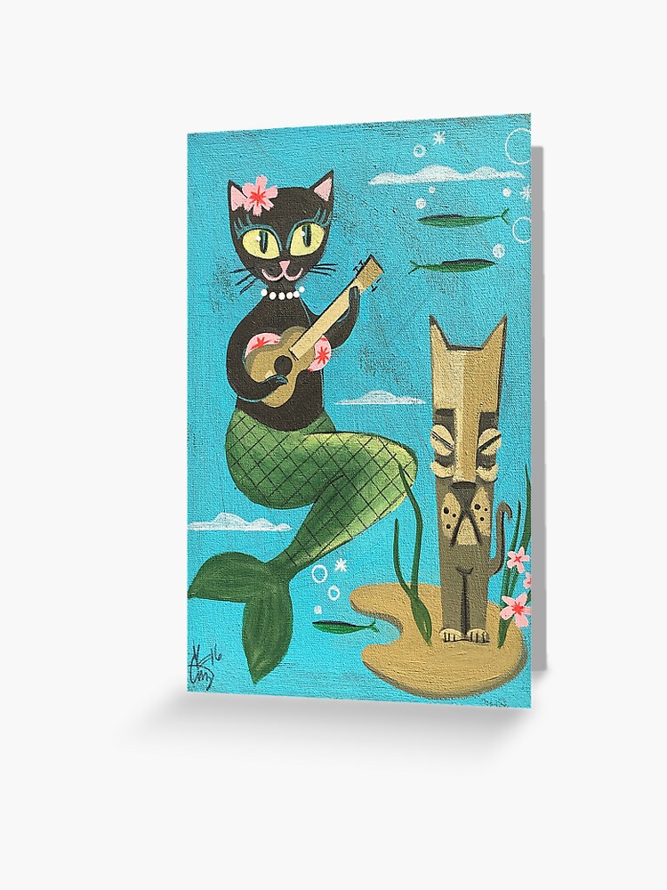 Tiki Cat Greeting Card By Elgatogomez Redbubble