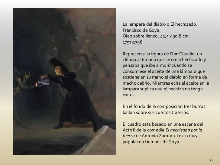 El hechizado por fuerza goya. A scene from el hechizado por fuerza the forcibly bewitched francisco de goya 17461828 the national gallery london back to image. It is an oil painting on canvas and depicts a scene from a play by antonio de zamora called the man bewitched by force spanish. Spanish painter printmaker lithographer engraver and etcher. La organizacion espacial del cuadro las sombras y gestos del personaje dan la impresion segun repiten los expertos de que goya quiso pintar una escena teatral escena que.