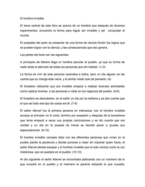 The Invisible Man Resumen En Ingles