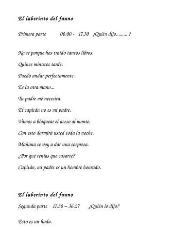 El Laberinto Del Fauno Ejercicio De Espanol Audicion Nivel