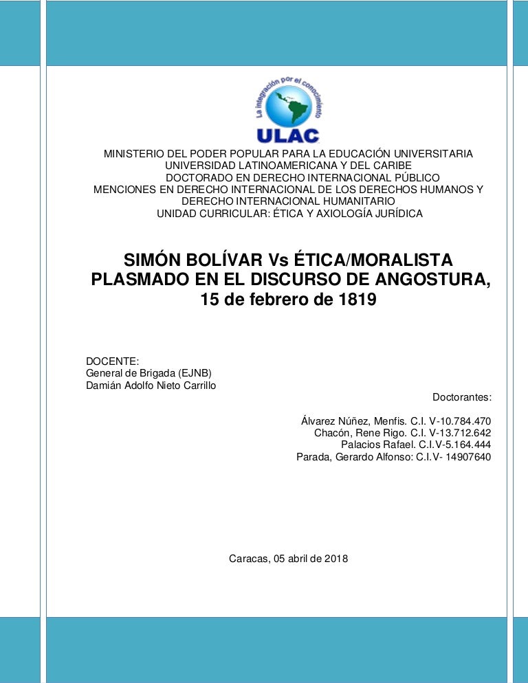 Simon Bolivar Vs Etica Moralista Plasmado En El Discurso De Angostu