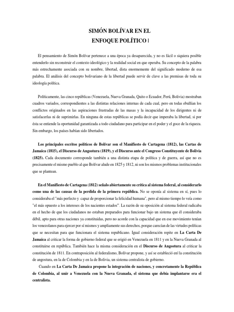 Texto Completo Del Discurso De Simon Bolivar En El Congreso De