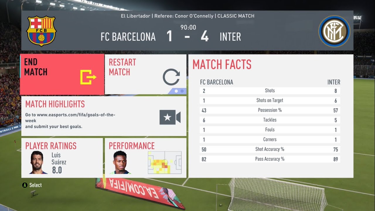 Fifa 20 Barcelona 1 Vs Inter 4 At El Libertador Stadium Referee