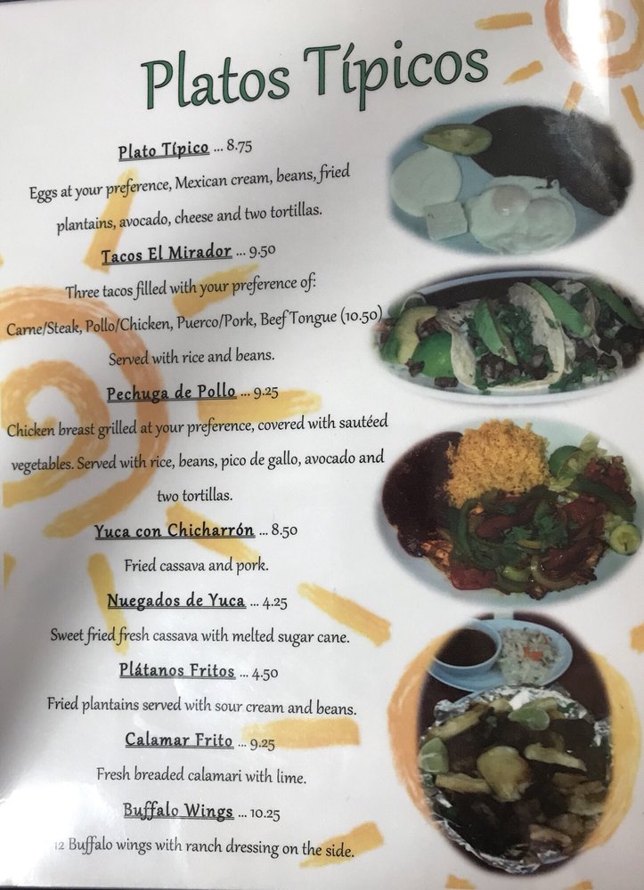 Online Menu Of El Mirador Restaurant Restaurant Manassas