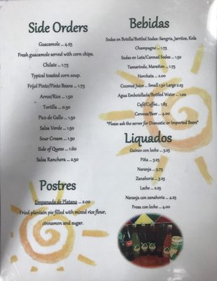 Menu Of El Mirador In Manassas Va 20109