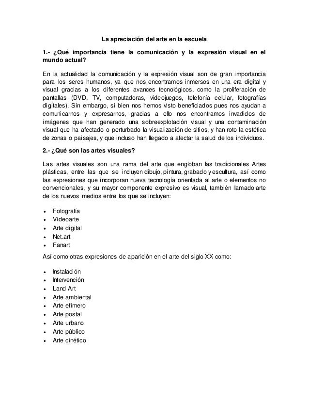 La Apreciacion Del Arte En La Escuela