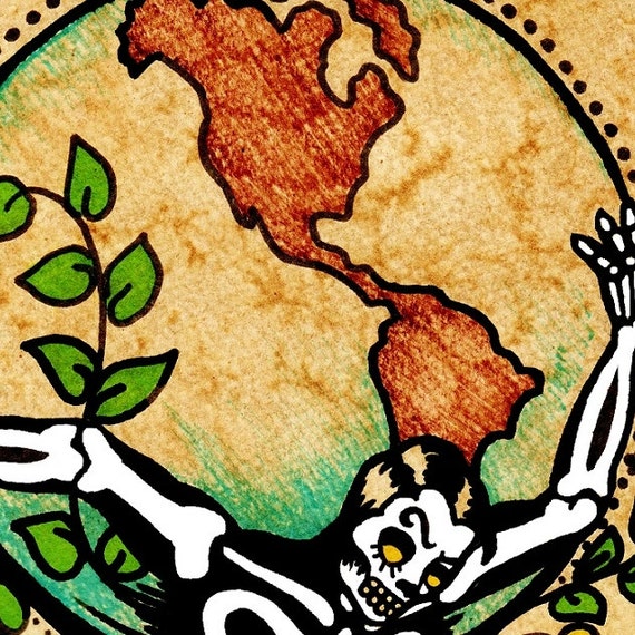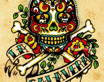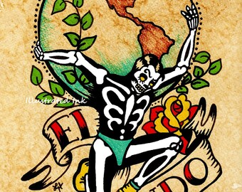 Day Of The Dead Tattoo Art El Mundo Loteria Print 5 X 7 8 X Etsy