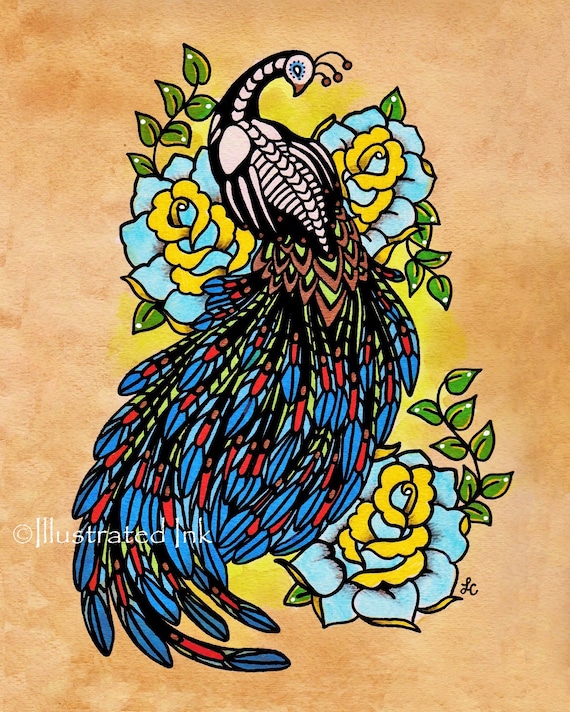Day Of The Dead Peacock Tattoo Art Print 5 X 7 8 X 10 Or 11 X Etsy