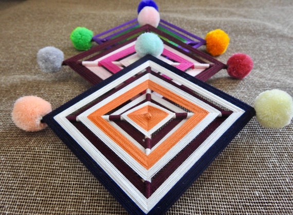 Ojo De Dios With Pompoms Eye Of God From Mexico Mexican Etsy