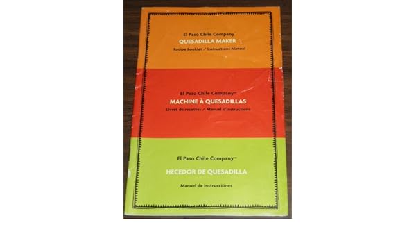 El Paso Chile Company Quesadilla Maker Recipe Booklet Instructions