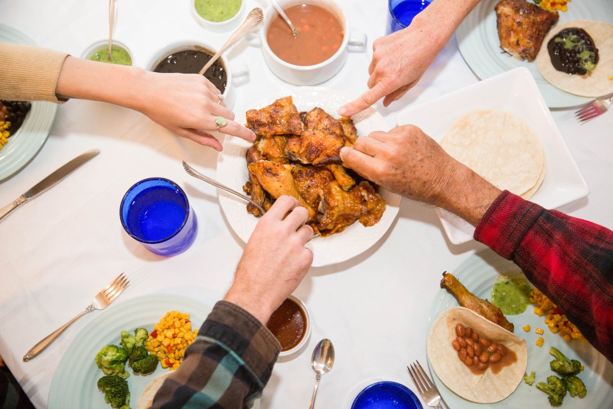10 pieces of fire grilled chicken two large sides warm tortillas chips and fresh salsa.