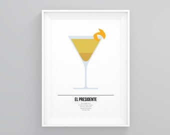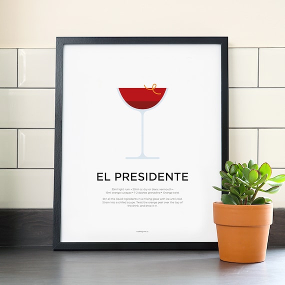 El Presidente Cocktail Print Cocktails Art Cocktail Recipe Etsy