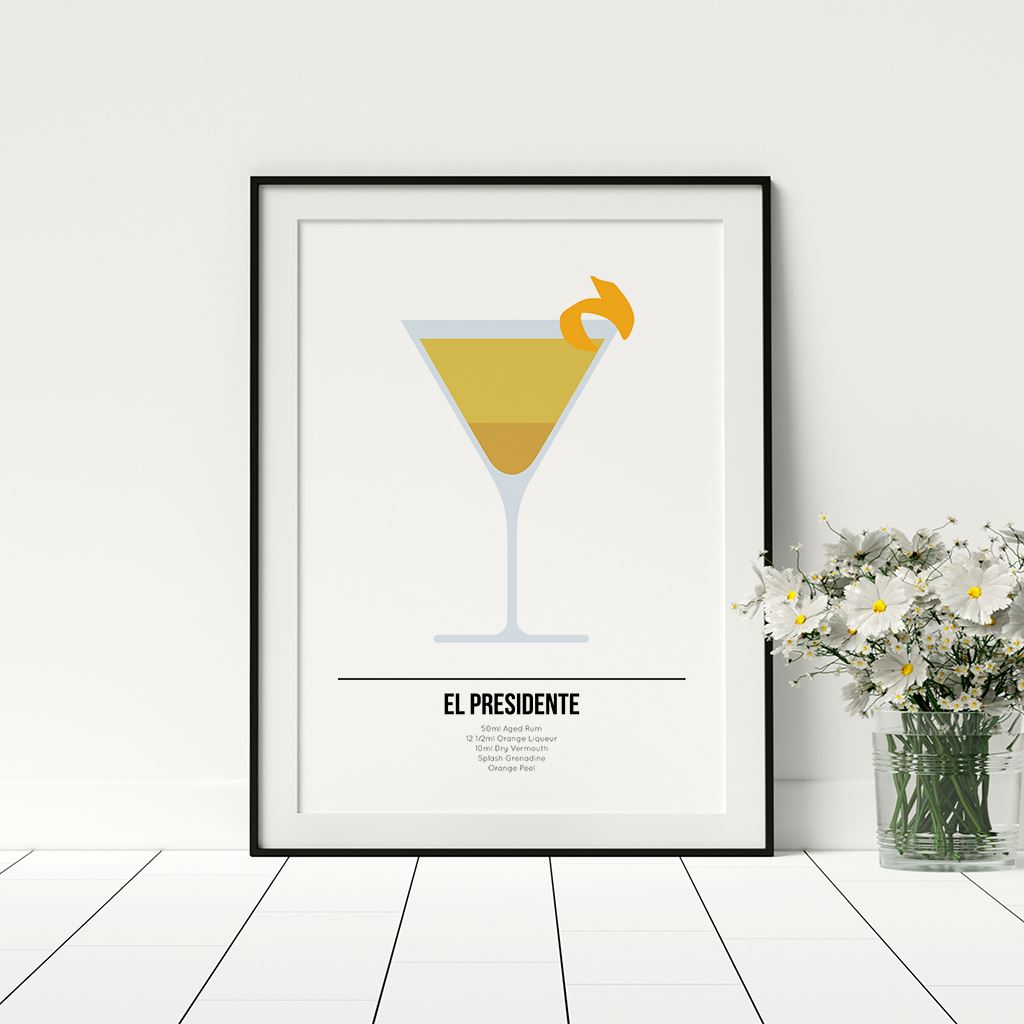 El Presidente Cocktail Art Alcohol Recipe Poster Livingroom Wall
