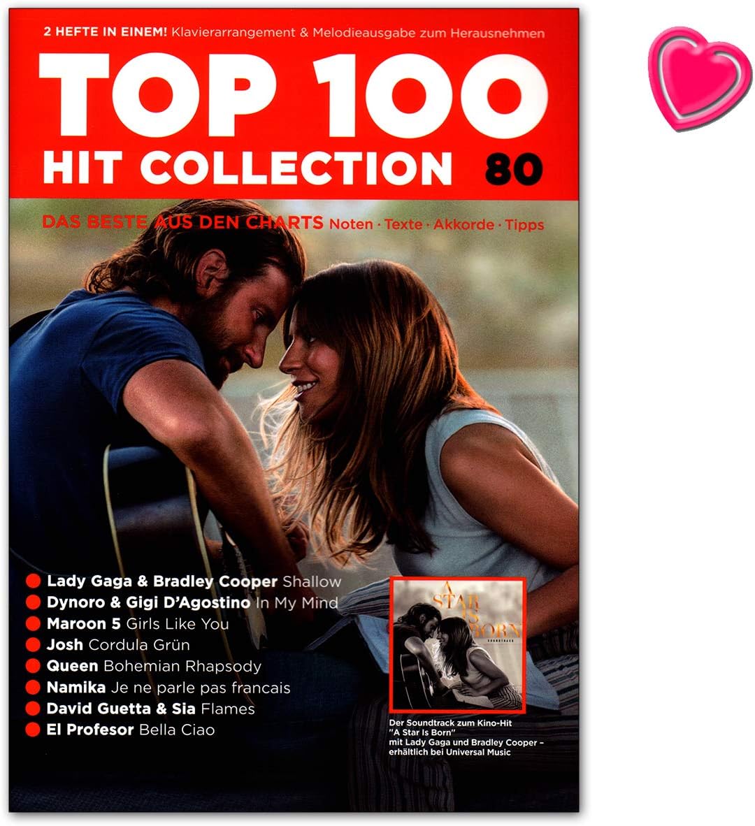 Top 100 Hit Collection 80 Lady Gaga Maroon 5 El Profesor Sheet Music Lyrics Chords Tips Book With Heart Shaped Music Clip Amazon Co Uk Musical Instruments