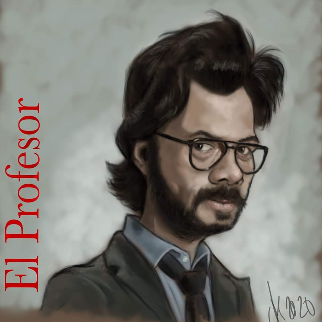 The Professor Money Heist Charcoal Portrait Sketch Art Time