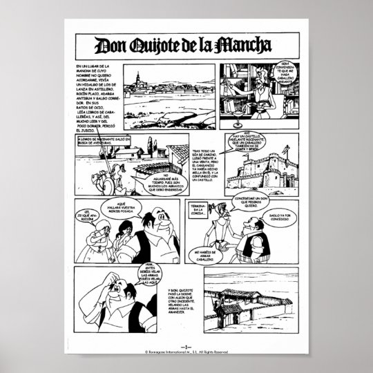 Don Quijote De La Mancha Comic Pagina 01 Poster Zazzle Ca