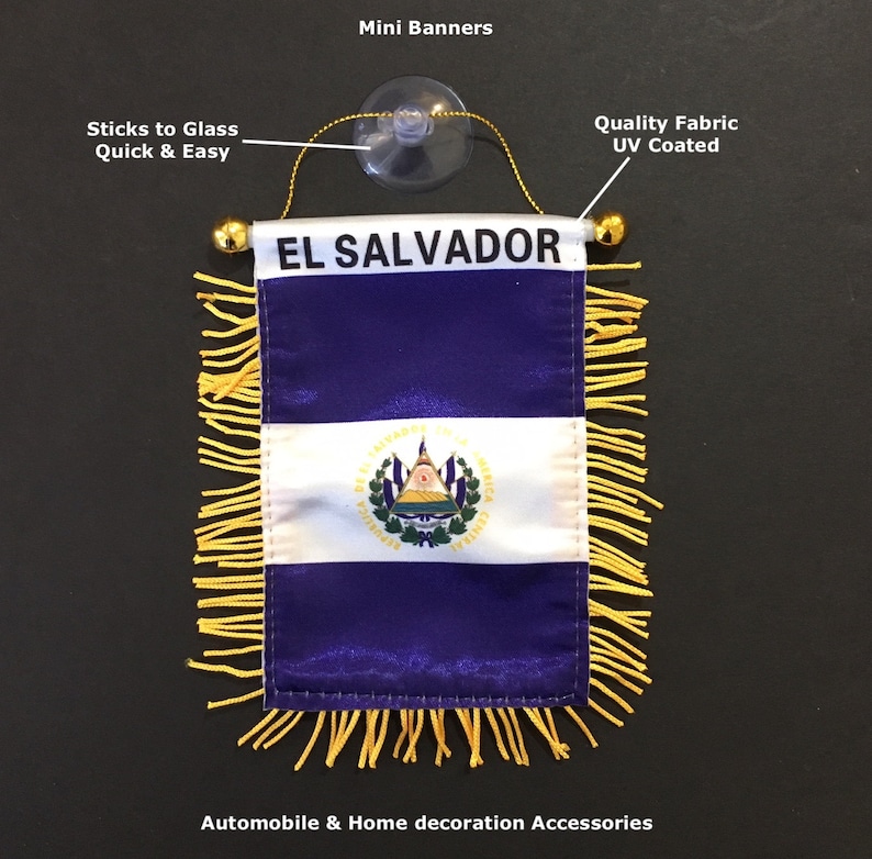 El Salvador Car Windshield Window Or Mirror Mini Banner Flag