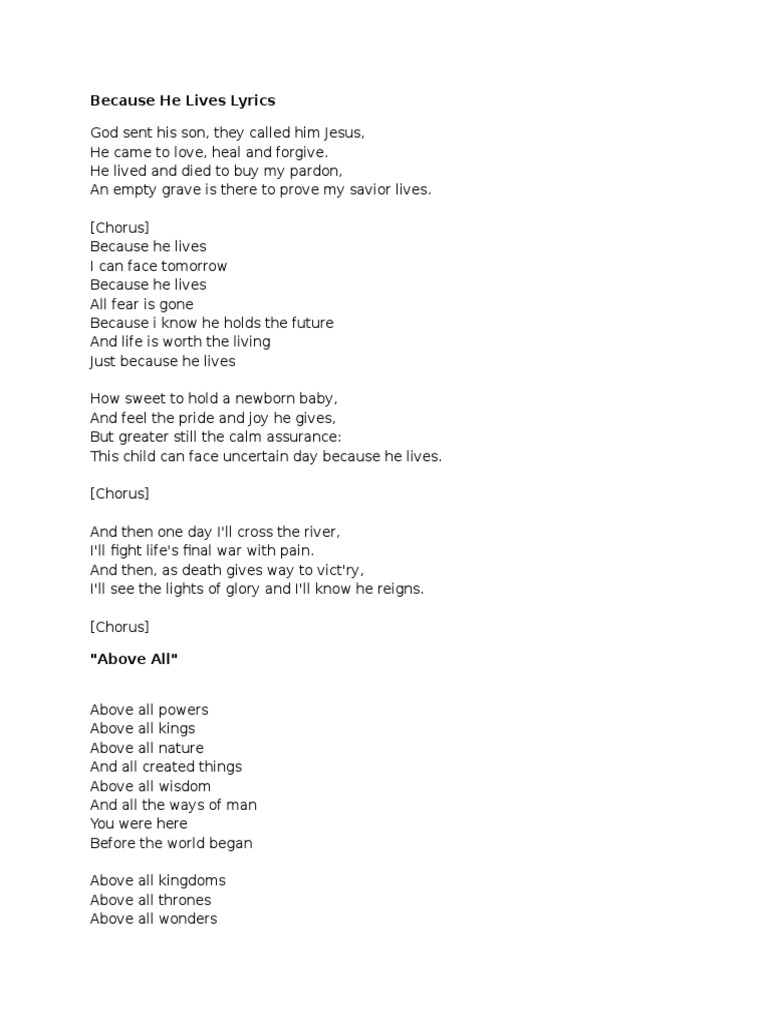 Because He Lives Lyrics Prayer Lord S Prayer