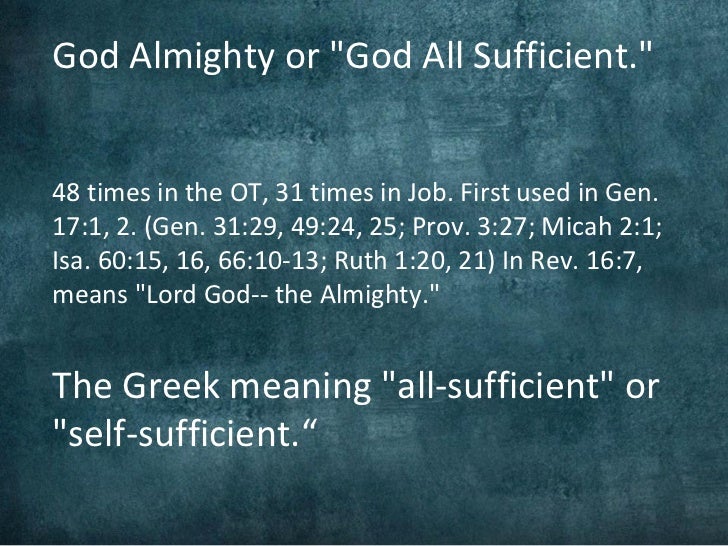 El Shaddai The All Sufficient God The God Who Provides For The