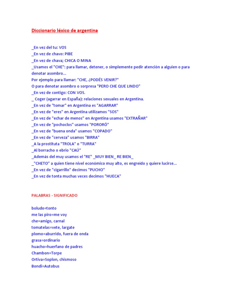 Diccionario Lexico De Argentina Bebidas