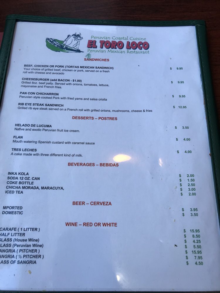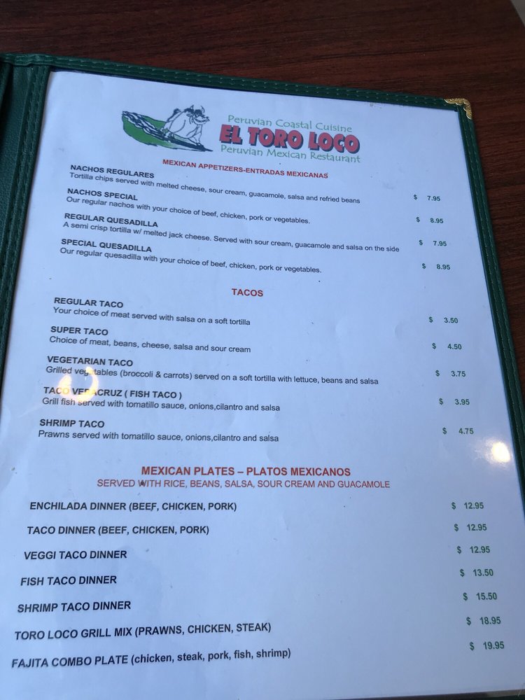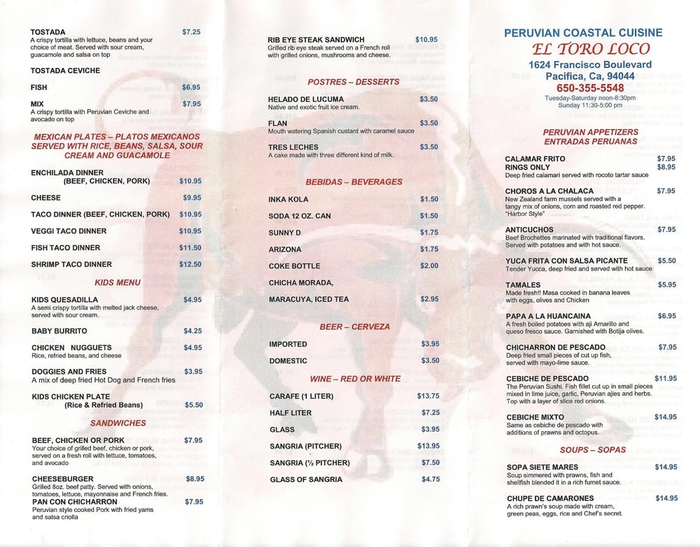 El Toro Loco Peruvian Mexican In Pacifica Restaurants San