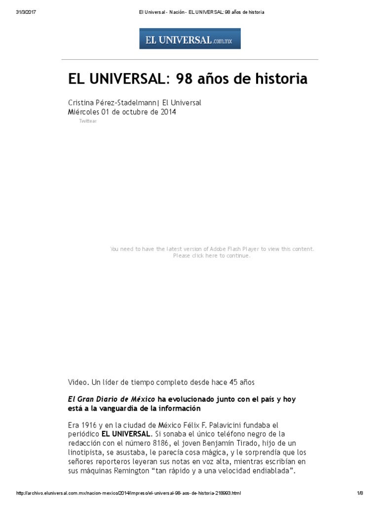 El Universal Nacion El Universal 98 Anos De Historia Mexico