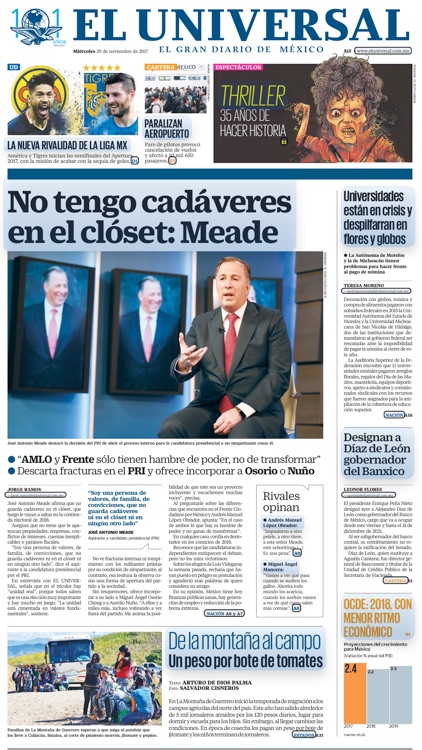Portada Lunes 26 De Noviembre El Universal Mexico Alnavio