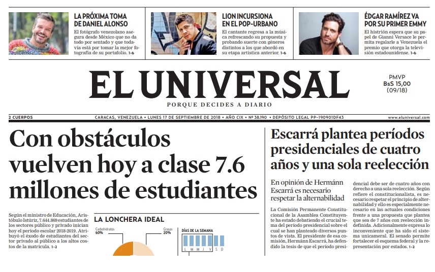 Newspaper Universal Venezuela Newspapers In Venezuela Monday S