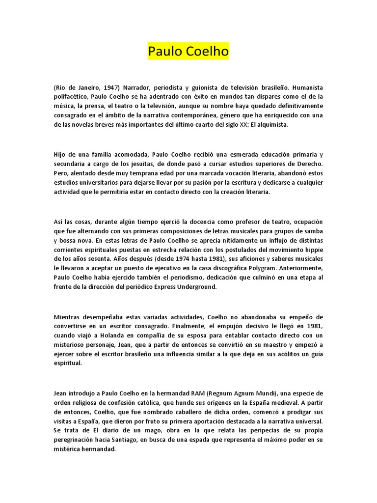 Paulo Coelho Docx Amor Educacion Religiosa