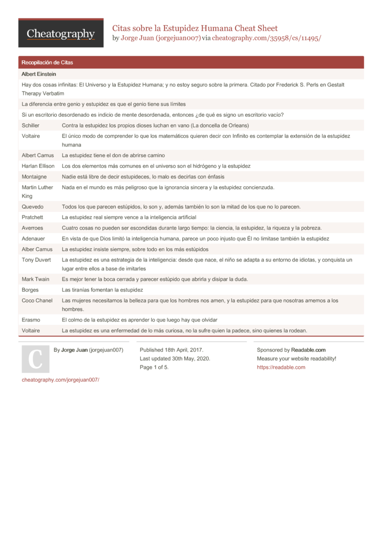 Citas Sobre La Estupidez Humana Cheat Sheet By Jorgejuan007