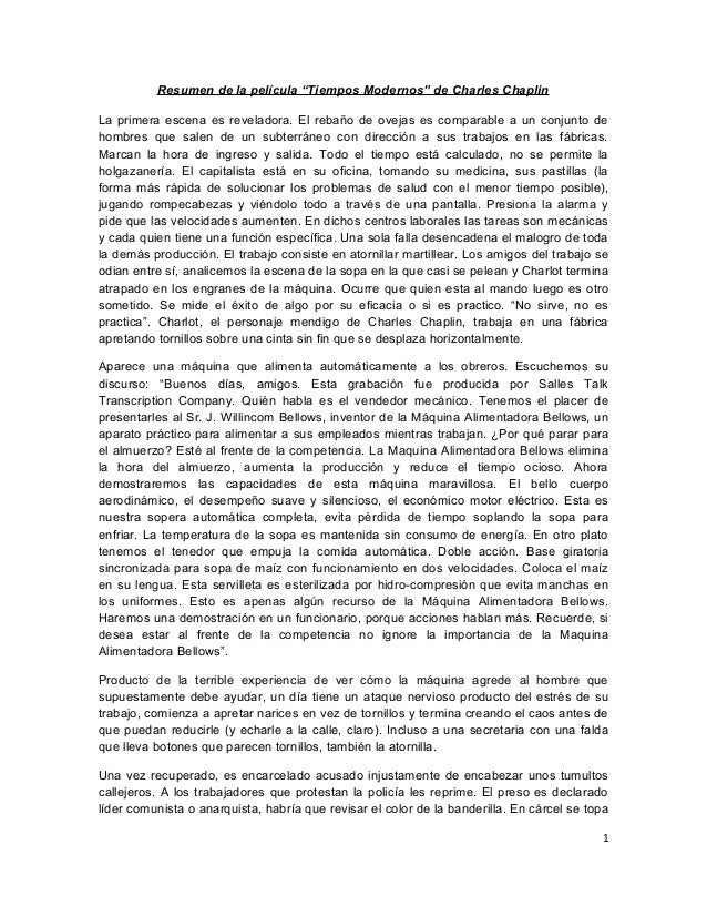 Resumen De La Pelicula Tiempos Modernos