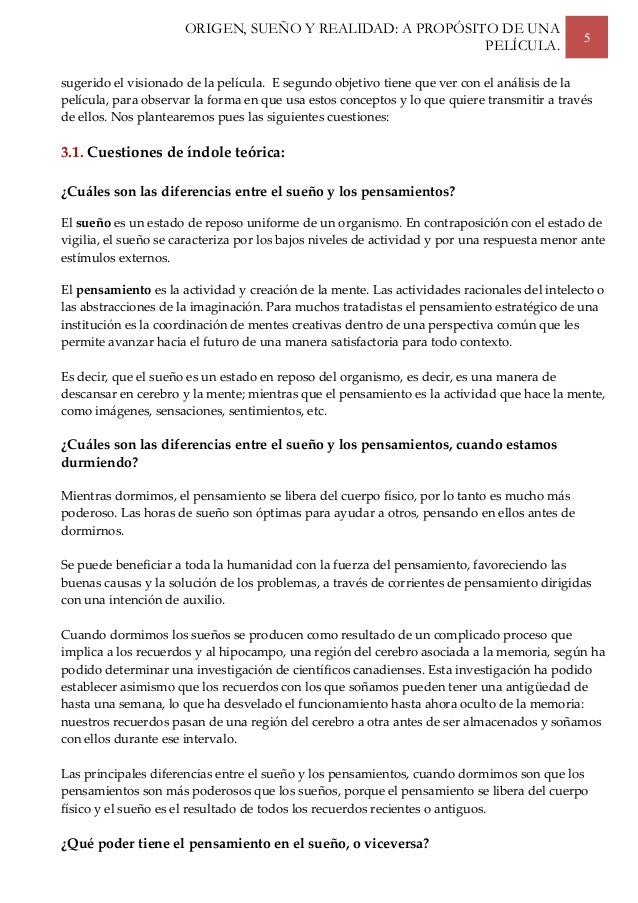 Origen Sueno Y Realidad A Proposito De Una Pelicula