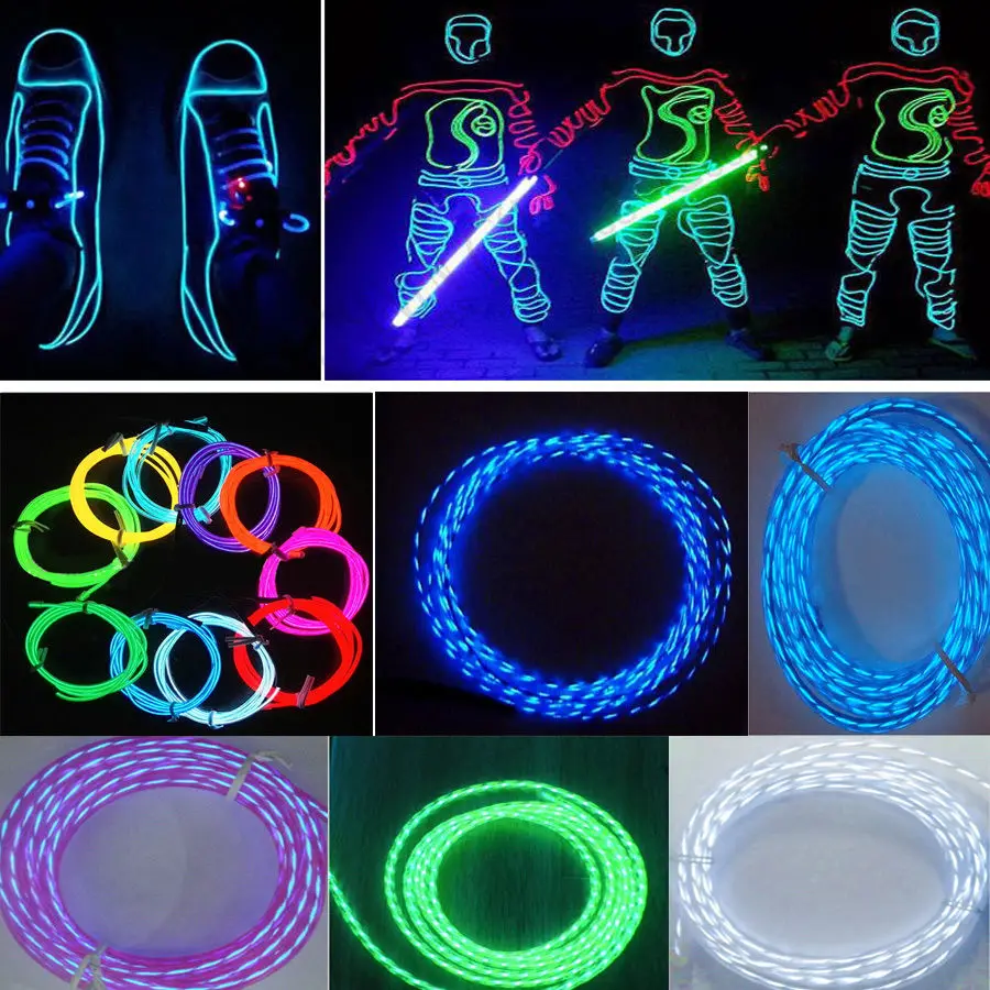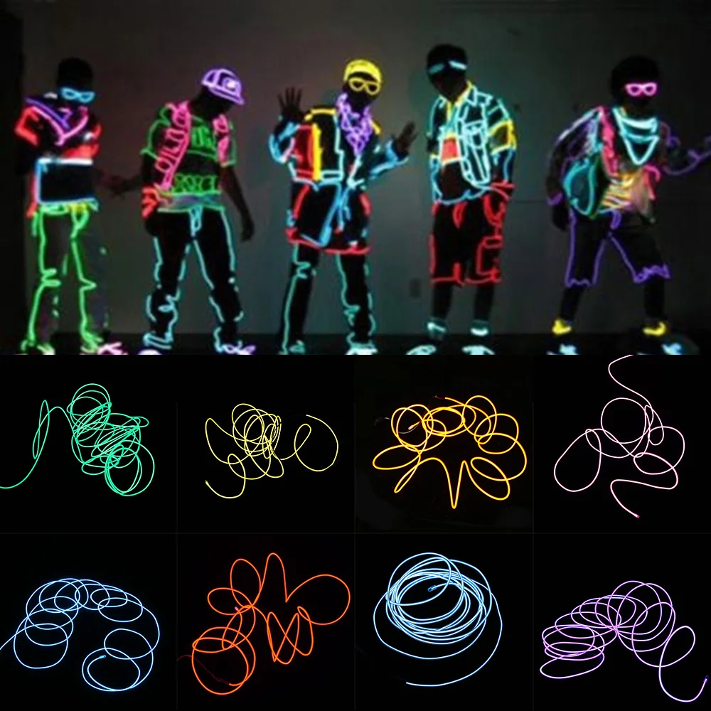 2m 3m 5m 3v 12v Flexible Neon Light Glow El Wire Rope Tape Cable