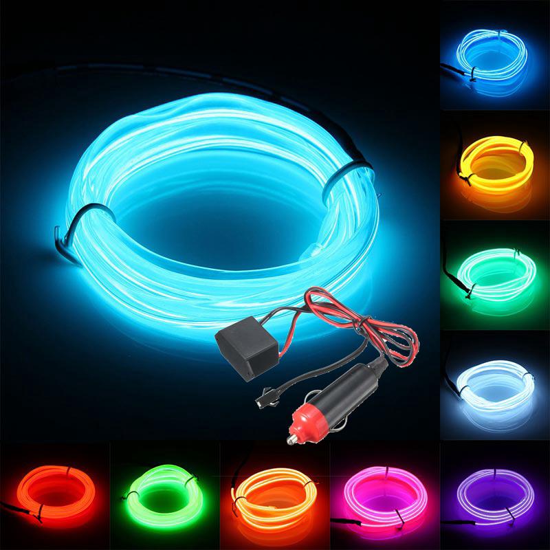 3 5m Car 12v Led Cold Lights Flexible Neon El Wire Auto Lamps On