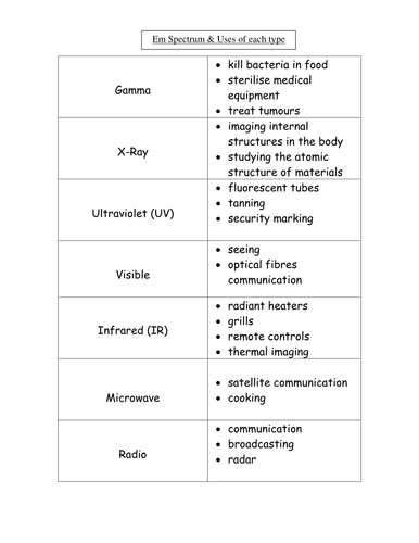 Uses And Hazards Of Electromagnetic Radiation Teaching Resources