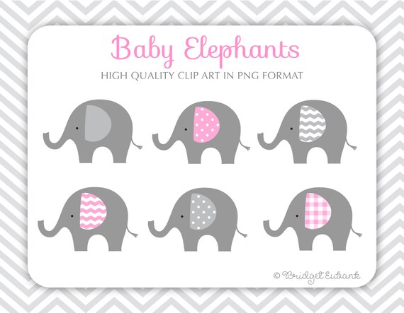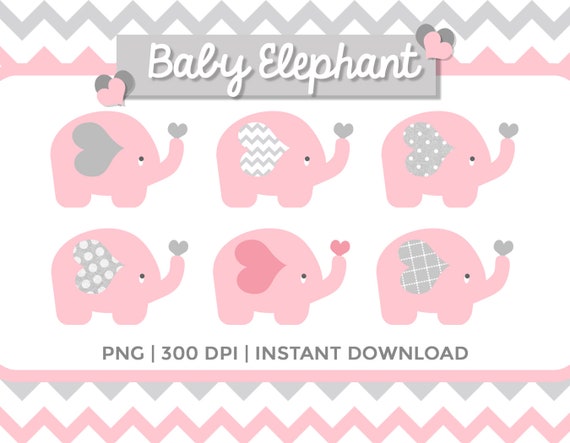 Pink And Grey Elephant Clipart Baby Clip Art Set Baby Elephant