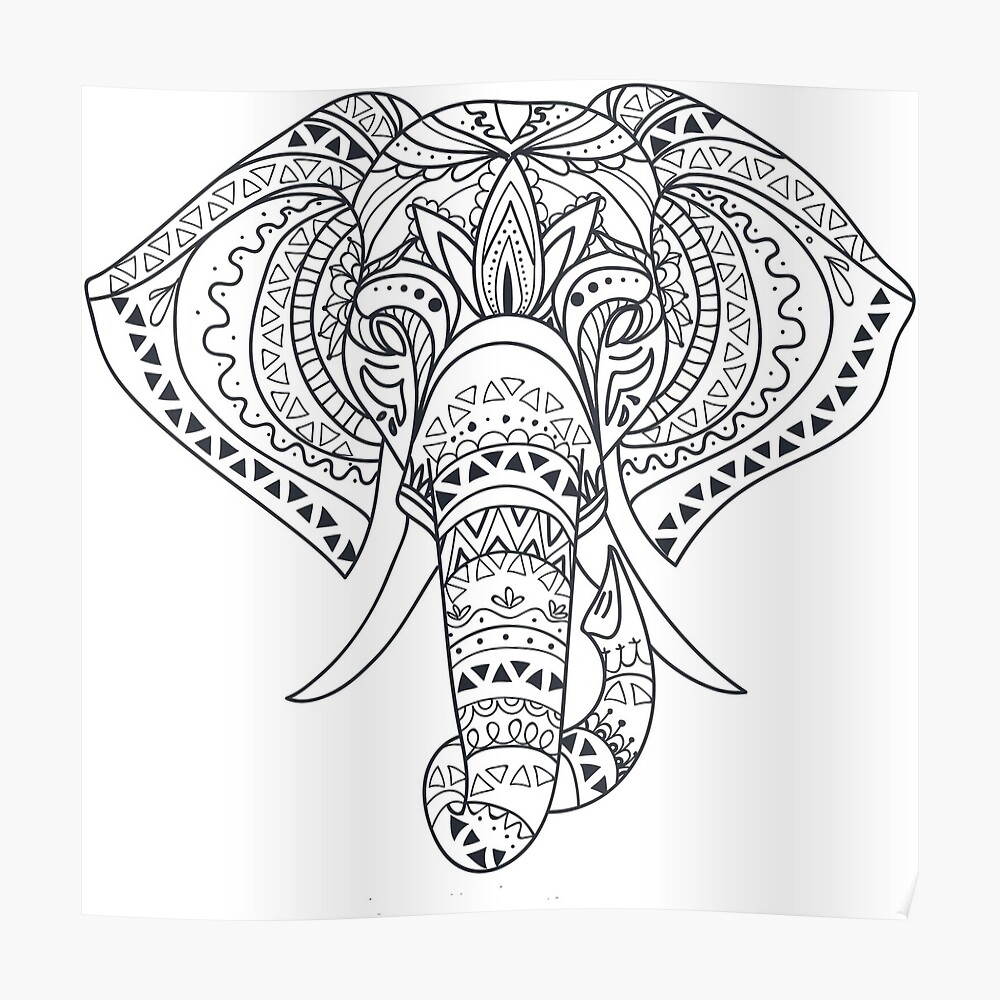 Tribal Tattooed Elephant Outline Black White Drawing Sticker