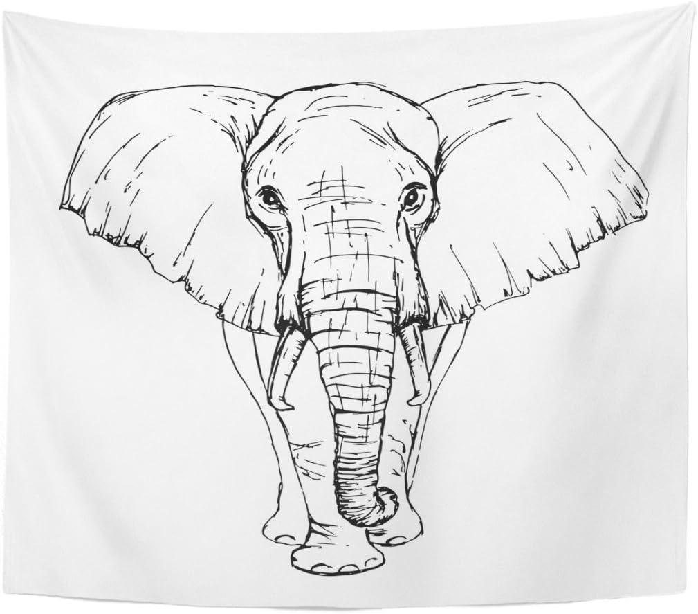 Emvency Tapestry Outline Sketch By Pen African Elephant Accessible