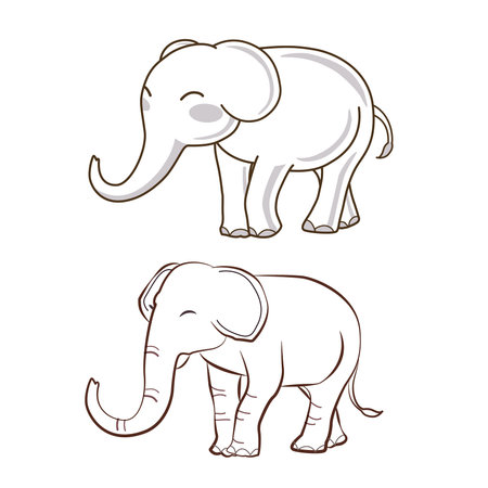 2 Elephant Cartoon Elephant Drawing Outline 2 Style