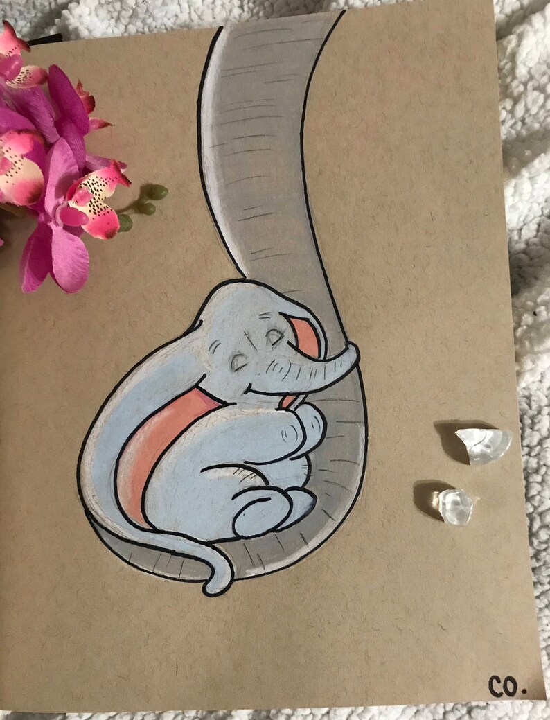 Baby Elephant With Mother Colored Prncil Drawing Etsy