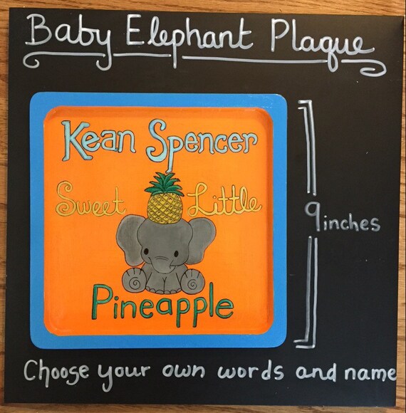 Baby Elephant With Pineapple Plaque Etsy