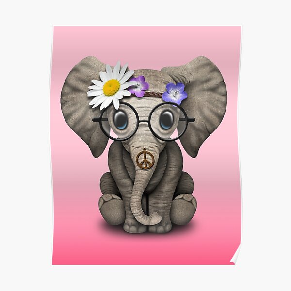 Baby Elephant Hippy Posters Redbubble