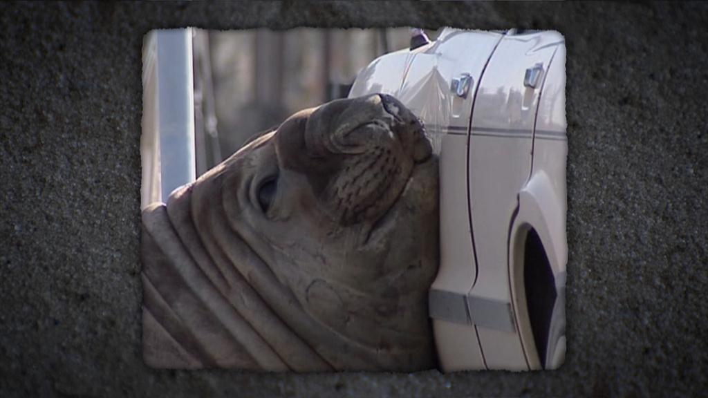 9 000 Lb Elephant Seal Throws All Of His Weight On A Car While