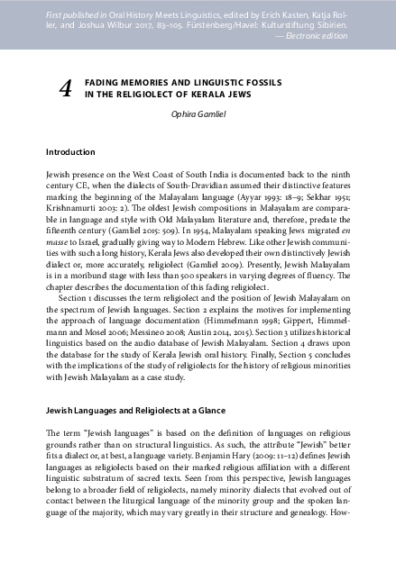 Pdf Fading Memories And Linguistic Fossils In The Religiolect Of