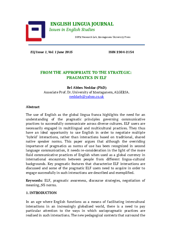 Pdf From The Appropriate To The Strategic Pragmatics In Elf