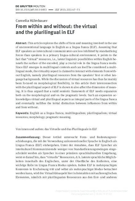Pdf From Within And Without The Virtual And The Plurilingual In